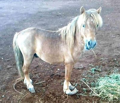 Peanut was a 9 year old mini stallion with curled up, neglected hooves, dumped in the desert. He was gelded soon after arrival. We did the surgery in an Infirmary stall and kept him in it with fly curtains, automatic fly sprayers and a fan. We exercised him throughout each day. He has made an amazing gelding!
