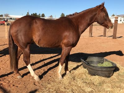 He is a Quarter Horse gelding, coming to us at age 7. Teaberry had been a competition horse. He developed sidebone and could no longer compete. So, we pulled his shoes, gave him months of therapies and natural care.
